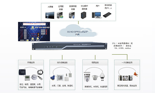 站端監(jiān)控包括各種探測(cè)傳感器、數(shù)據(jù)采集單元、無(wú)線(xiàn)無(wú)源測(cè)溫系統(tǒng)、局放在線(xiàn)監(jiān)測(cè)系統(tǒng)、門(mén)禁系統(tǒng)幾個(gè)部分。站端監(jiān)控安裝在配電室實(shí)時(shí)監(jiān)測(cè)現(xiàn)場(chǎng)實(shí)際環(huán)境狀態(tài)及各項(xiàng)參數(shù)如視頻明火、煙霧、人員非法入侵動(dòng)物入侵、環(huán)境溫濕度、門(mén)禁、空調(diào)狀態(tài)、臭氣含量、開(kāi)關(guān)柜母排溫度、開(kāi)關(guān)柜內(nèi)局放等讀取二次電力設(shè)備監(jiān)控系統(tǒng)電量參數(shù)及報(bào)警事件信息通過(guò)通信網(wǎng)絡(luò)將現(xiàn)場(chǎng)各項(xiàng)參數(shù)及狀態(tài)上傳···