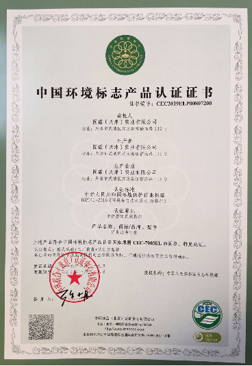 美盛高強度符合中國環(huán)境標志產(chǎn)品認證實施規(guī)則CEC-7003EL要求,獲得中國環(huán)境標志產(chǎn)品認證證書