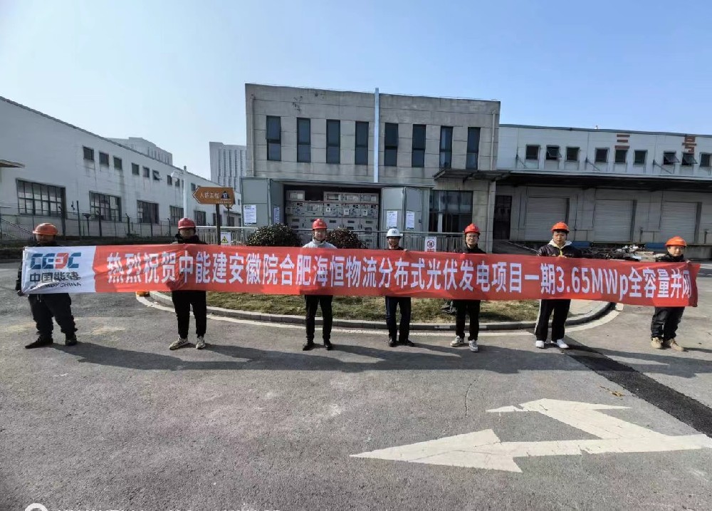 熱烈祝賀中能建安徽院合肥海恒物流分布式光伏發(fā)電項(xiàng)目一期3.65MWp全容量并網(wǎng)